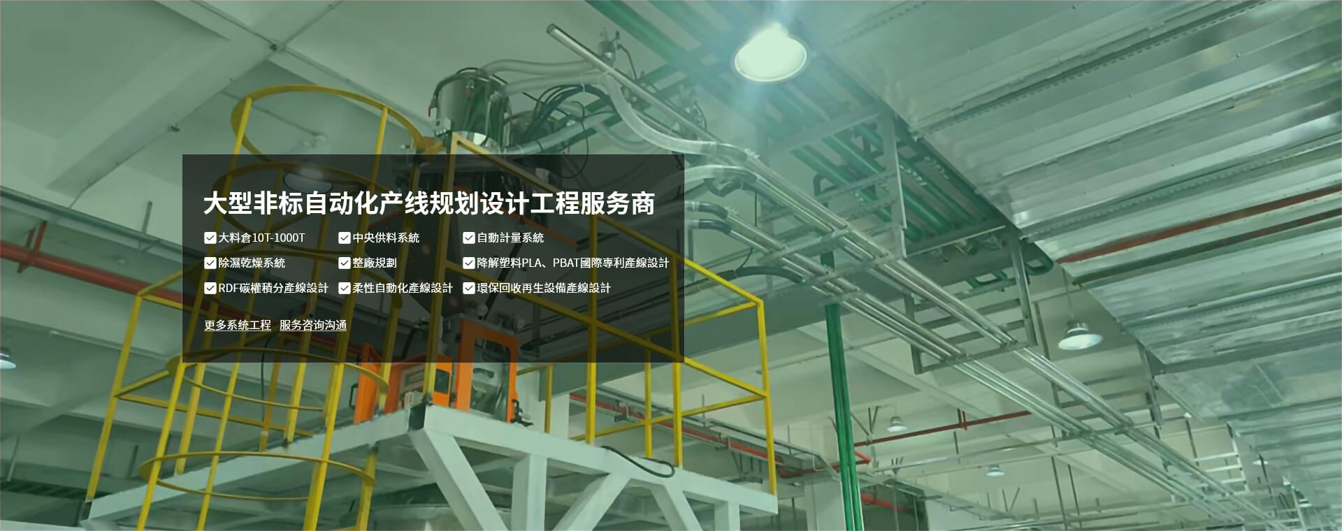 在整廠規(guī)劃等自動(dòng)化系統(tǒng)工程的設(shè)計(jì)、製作、承建方面,積累了豐富的項(xiàng)目經(jīng)驗(yàn),可為不同行業(yè)客戶提供整廠規(guī)劃設(shè)計(jì)解決方案,企業(yè)實(shí)力雄厚,資質(zhì)齊全,服務(wù)可靠。